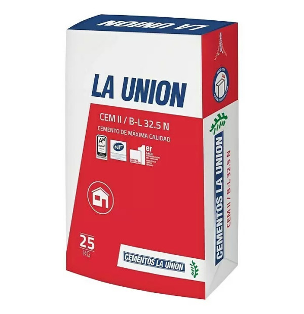 El Cemento La Unión IIB/L 32.5 N es un cemento polivalente ideal para trabajos de albañilería general, como enfoscados, morteros, soleras y pequeñas obras. Su fórmula garantiza una resistencia progresiva y un acabado de calidad tanto en interiores como en exteriores.