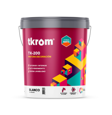 TKROM MATE TK-200 es una pintura blanca plástica mate de alta calidad, con excelente cubrición, bajo nivel de salpicado y buena lavabilidad. Su fórmula mejorada, libre de amoniaco y con aroma agradable, la convierte en la elección ideal para obra nueva, reformas o mantenimiento en espacios interiores y exteriores.